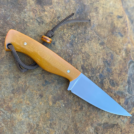 Hunter in 1080 w/ Polished Butterscotch Linen Micarta and Bead