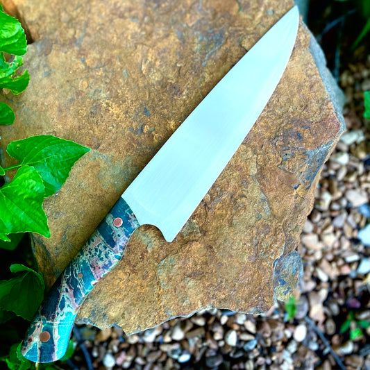 Chef Knife in 1080 w/ Koa and Paper Micarta