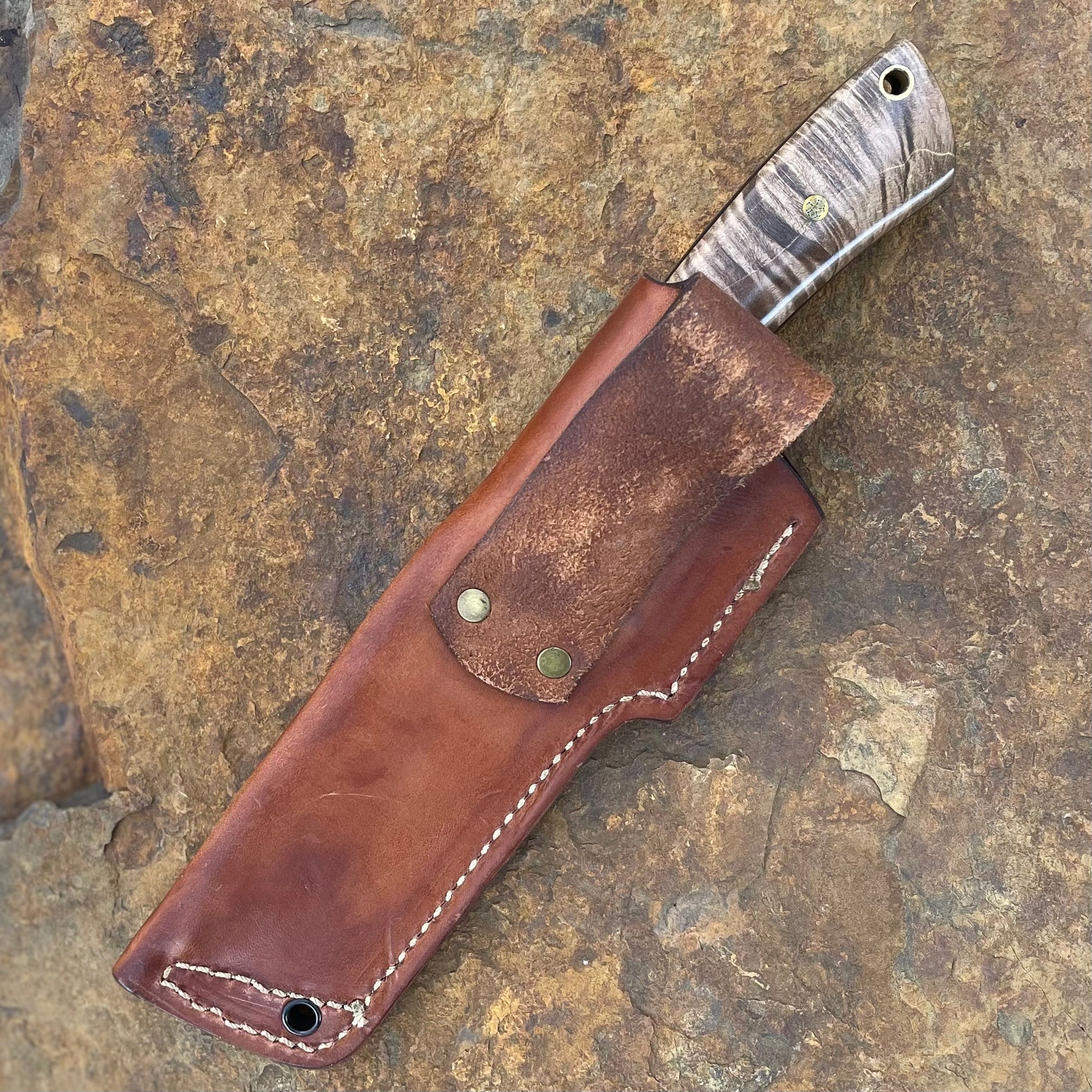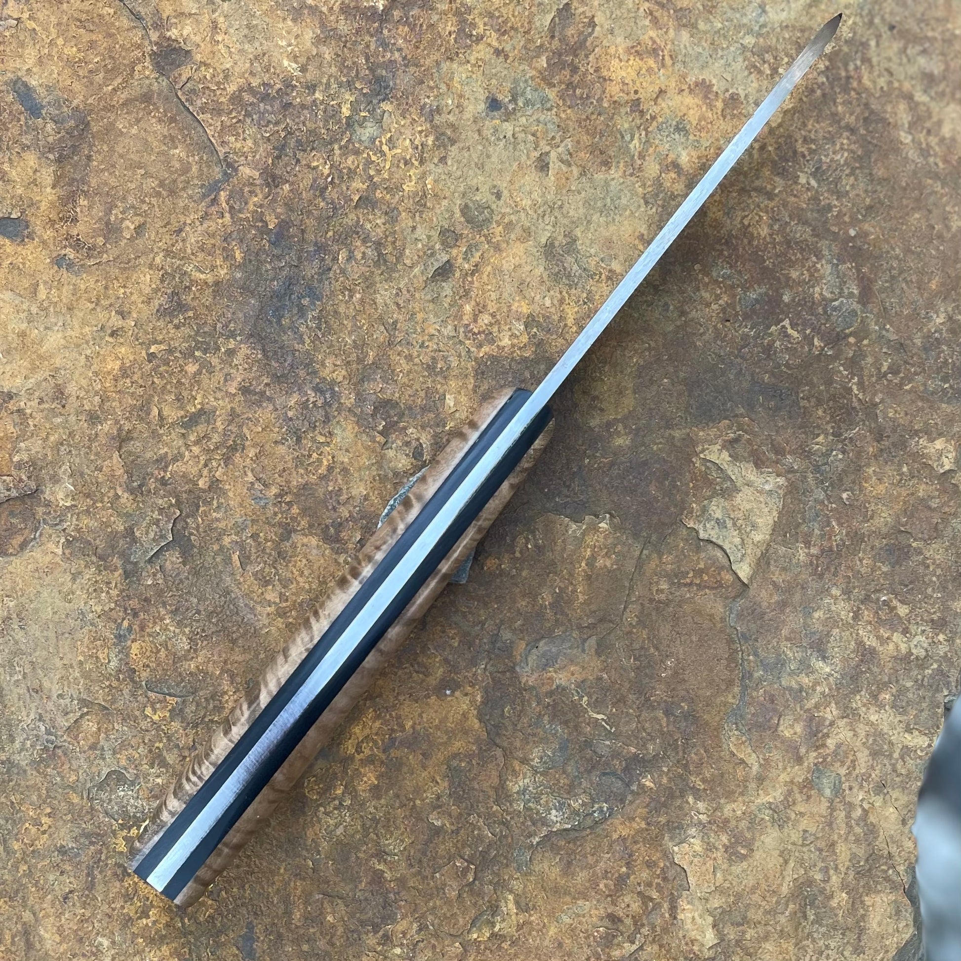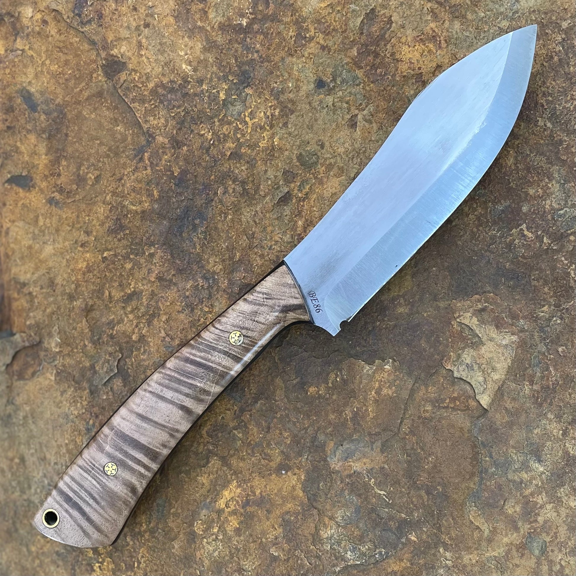 About the Maker: Greg Campbell owns and operates Cur Custom Blades in Richmond, Virginia. He has been making knives for 9 years and specializes in bushcraft, hunting, EDC and culinary knives in the Japanese style. Greg also teaches knifemaking classes out of Hardway Workshop, a community shop in Richmond, Virginia that he was instrumental in starting. When he's not in the shop, you'll find him managing a genetics lab at Virgina Commonwealth University or at home with his wife of 30 years and three daugthers.